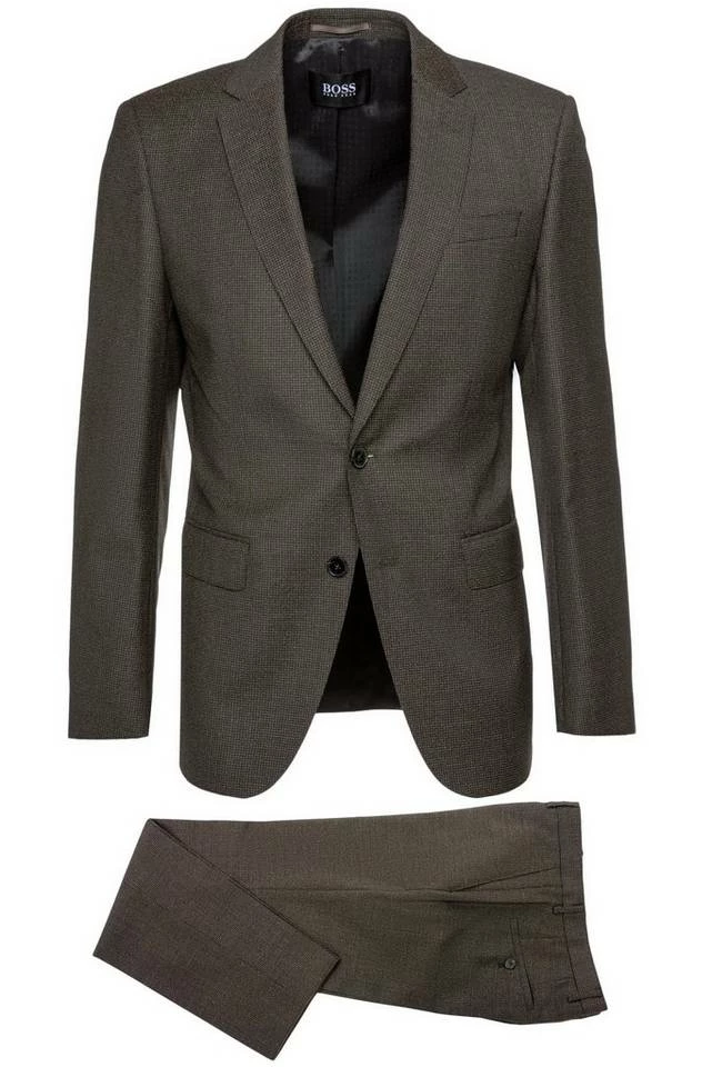 Herren-Anzug von BOSS Menswear Slim Fit / Schmale Passform Schmaler Reverskragen mit fallendem Revers Zweiknopf-Verschluss Formgebende Schulterpolster Eine schräge Leistentasche auf der Brust Paspelierte Pattentaschen vorn Dreierlei Paspeltaschen innen Lange Ärmel mit Kissing-Buttons Hose mit seitlichen Eingrifftaschen &, Leistentaschen am Gesäß