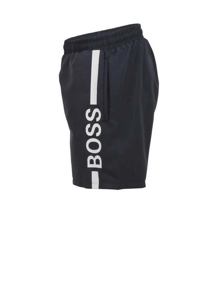 Trendige BOSS Badeshort mit markantem Logo-Print. Schnelltrocknende Short aus recyceltem Material-Mix mit verdecktem Tunnelzug und Gummibund für einen markanten Look.