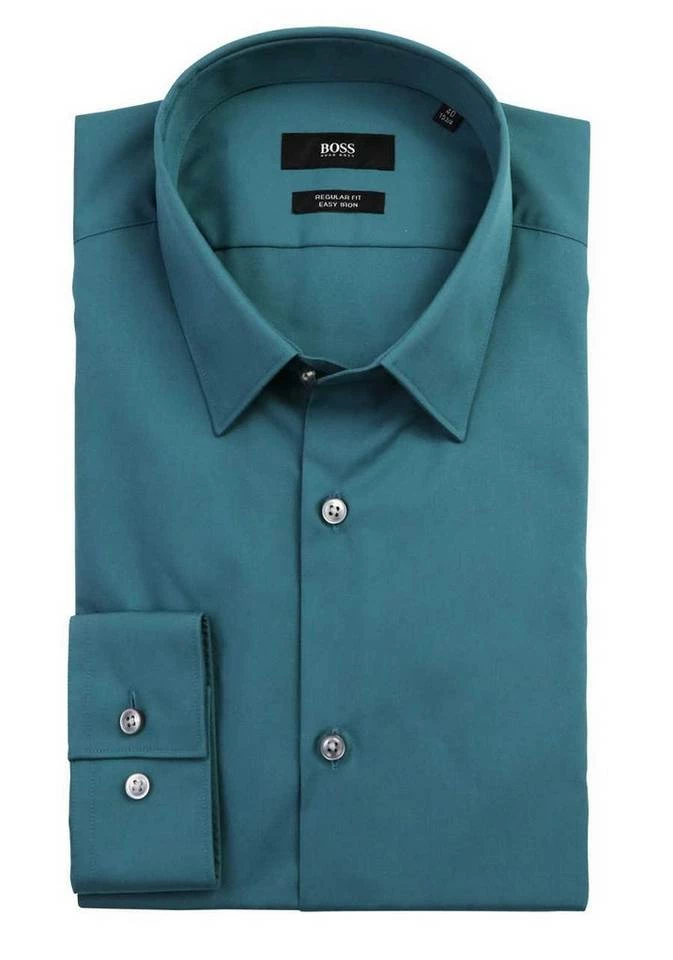 - BOSS Businesswear Herren Hemd New Kent Kragen extra langer Arm Hemd mit verlängerter Arm mit Hemd längerer Arm Baumwolle geknöpft Sportmanschette Uni grün