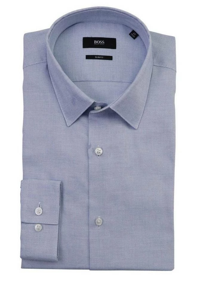 - BOSS Slim Fit Hemd extra kurzer Arm mit New Kent Kragen und Sportmanschetten aus reiner Baumwolle in Struktur blau