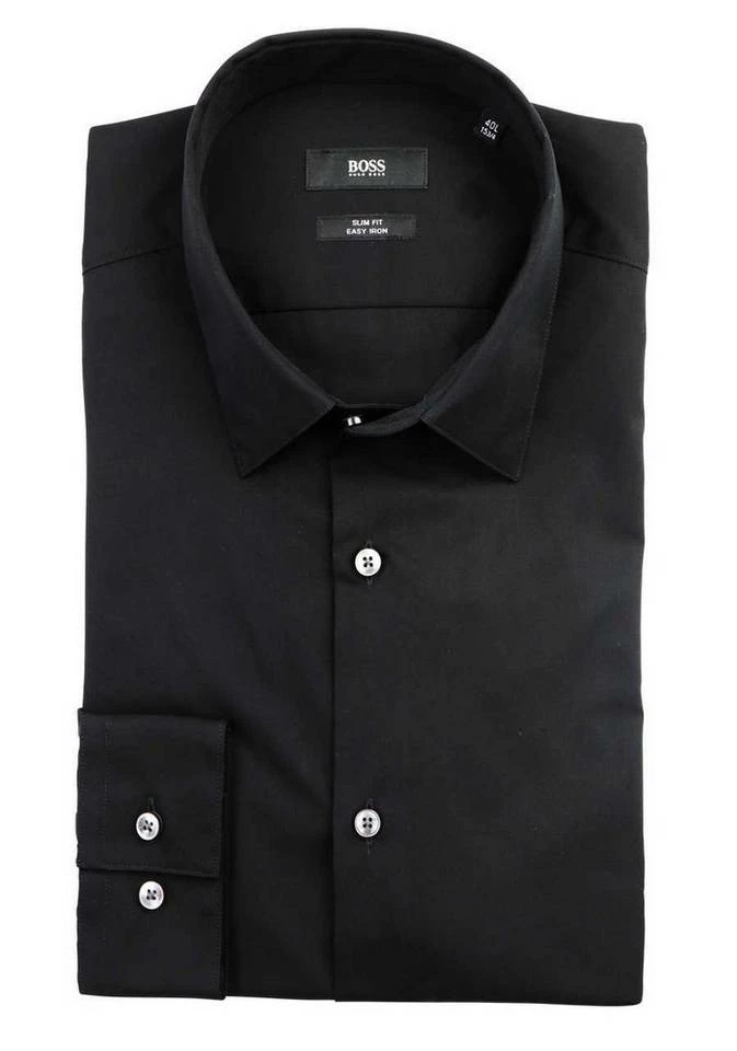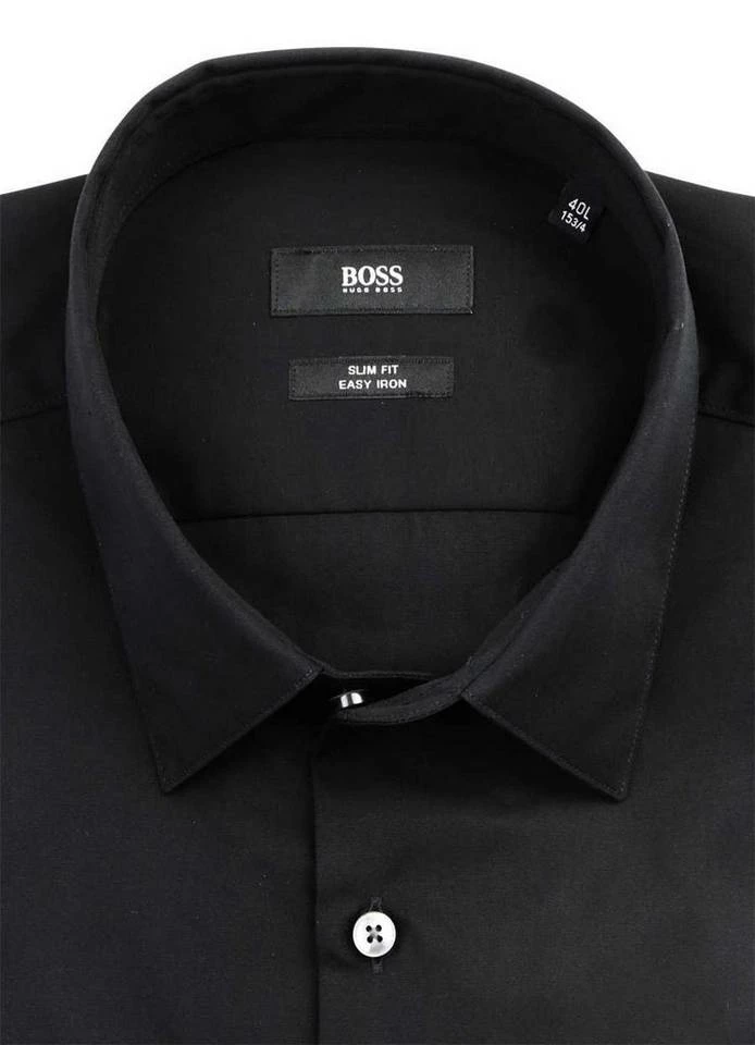 - BOSS Businesswear Herren Hemd extra langer Arm Slim Fit New Kent Kragen geknöpft Sportmanschette Baumwolle Uni schwarz