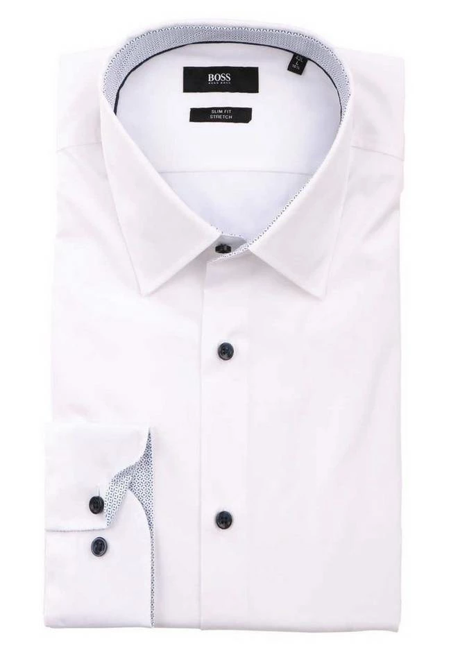 - BOSS Slim Fit Hemd extra langer Arm New Kent Kragen und Sportmanschetten mit Patch Stretch Baumwolle Elasthan Uni weiß