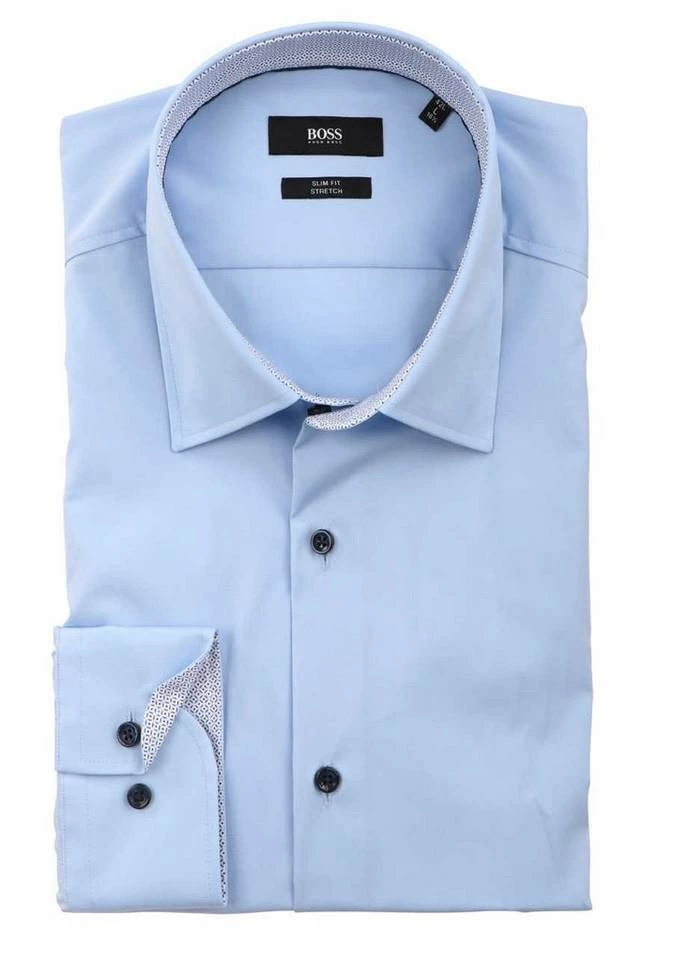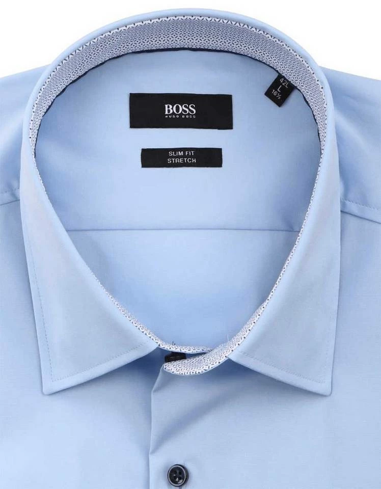 - BOSS Slim Fit Hemd extra langer Arm New Kent Kragen und Sportmanschetten mit Patch Stretch Baumwolle Elasthan Uni hellblau