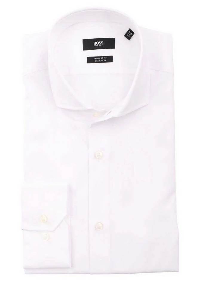 - BOSS Regular Fit Hemd extra kurzer Arm Haifischkragen Sportmanschette reine Baumwolle Uni weiß