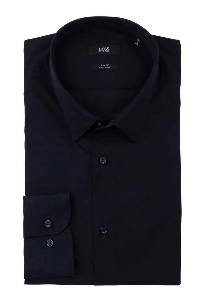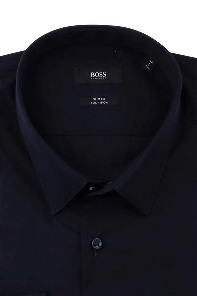 - BOSS Slim Fit Herren Hemd Langarm New Kent Kragen Sportmanschetten reine Baumwolle Uni nachtblau