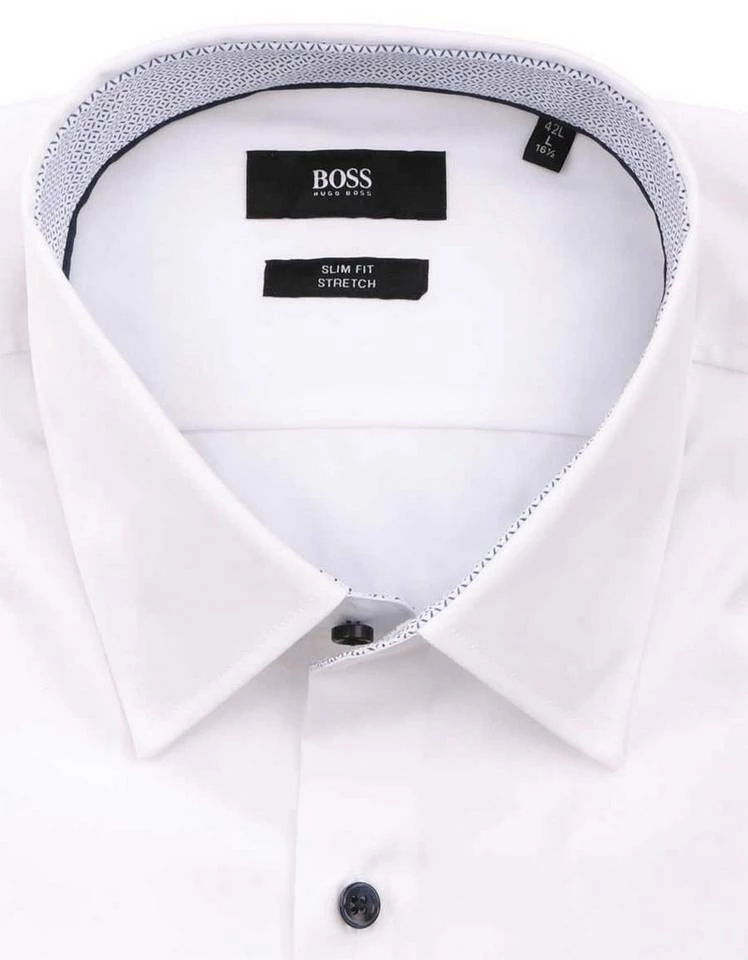 - BOSS Slim Fit Hemd extra kurzer Arm New Kent Kragen und Sportmanschetten mit Patch Stretch Baumwolle Elasthan Uni weiß