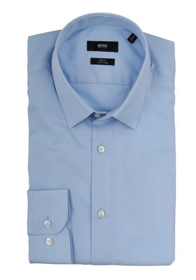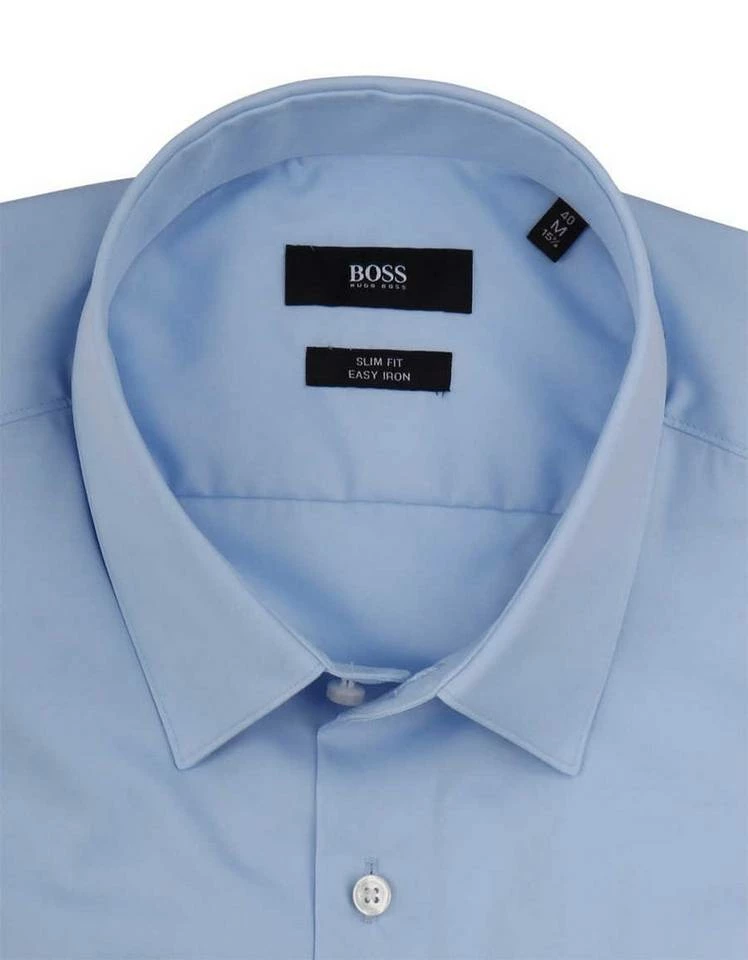 - BOSS Slim Fit Herren Hemd extra kurzer Arm New Kent Kragen Sportmanschetten reine Baumwolle Uni hellblau