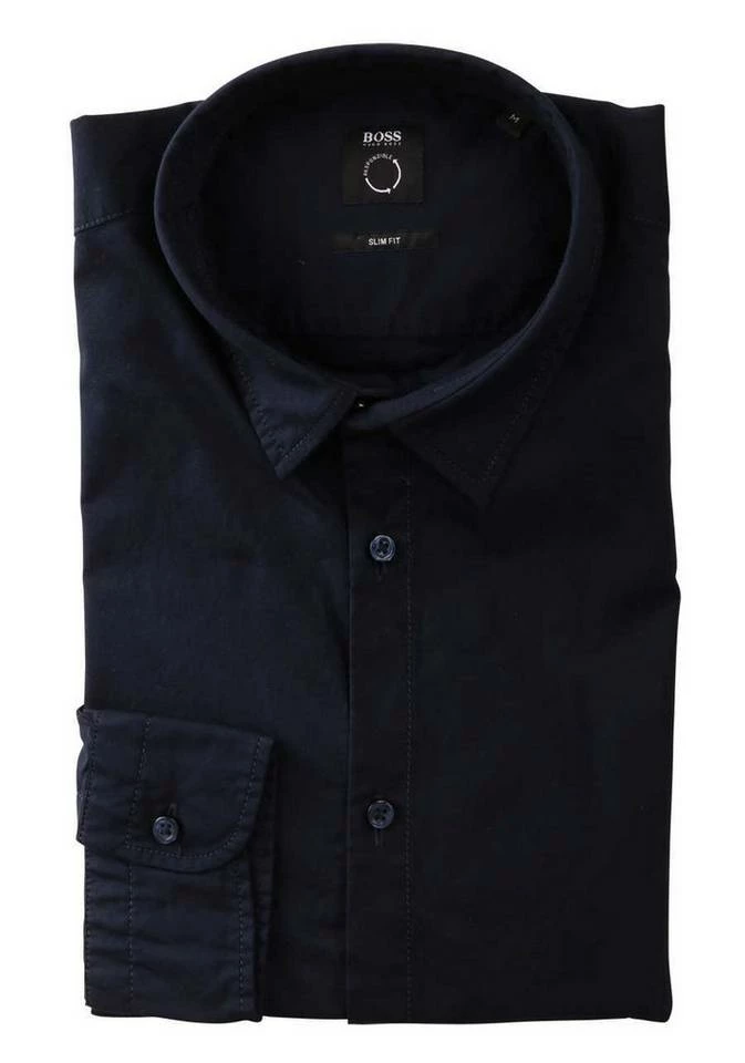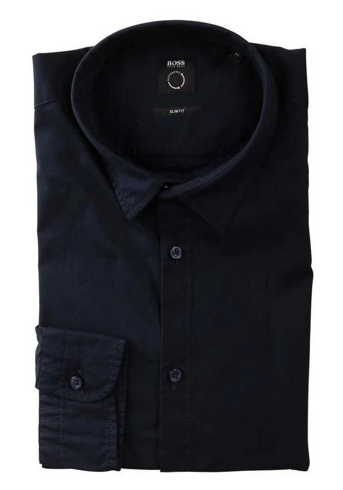 - BOSS Casual Herren Slim Fit Hemd Langarm New Kent Kragen Standartmanschette Baumwollmischung Uni navy