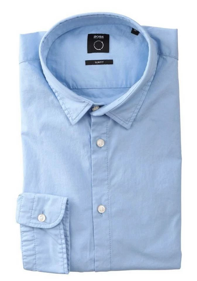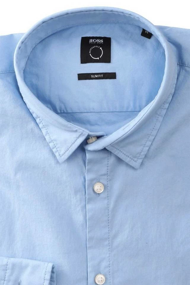 - BOSS Casual Herren Slim Fit Hemd Langarm New Kent Kragen Standartmanschette Baumwollmischung Uni blau