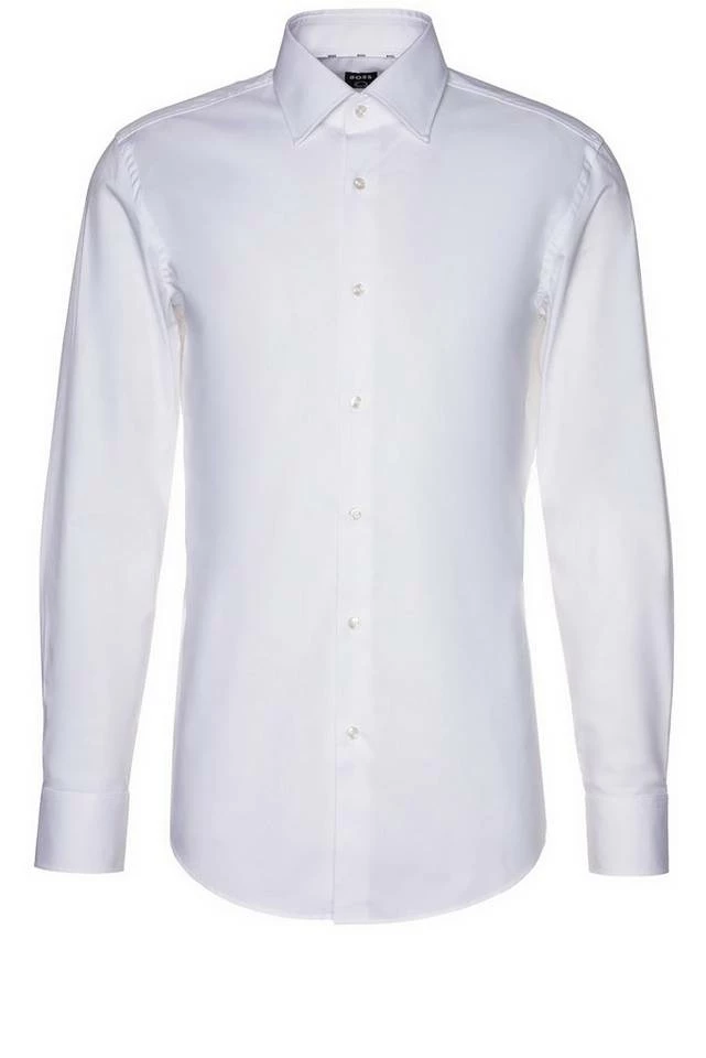 Herren-Hemd von BOSS Menswear Hemd aus Performance Stretch Slim Fit / Schmale Passform Kentkragen Schließt mit Knopfleiste Lange Ärmel mit Knopf-Details Funktionsmaterial, mit maximaler Bewegungsfreiheit Atmungsaktiv