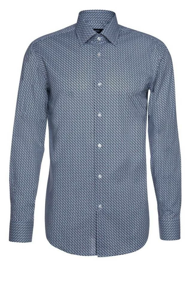 Herren-Hemd von BOSS Menswear Slim Fit / Schmale Passform Kentkragen Durchgehende Knopfleiste Lange Ärmel mit Knopf-Manschetten All-Over-Musterung