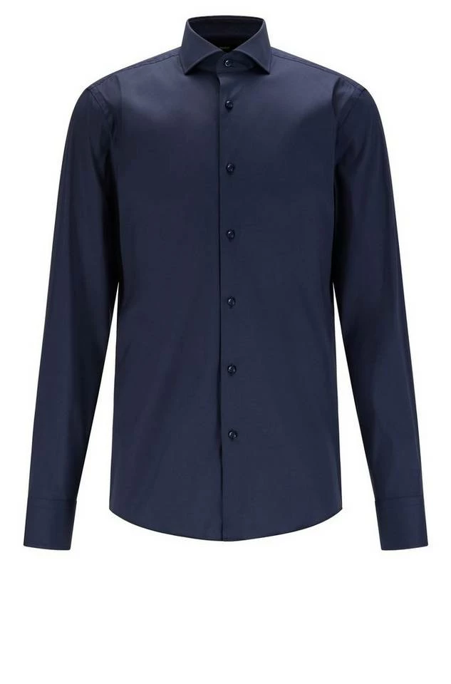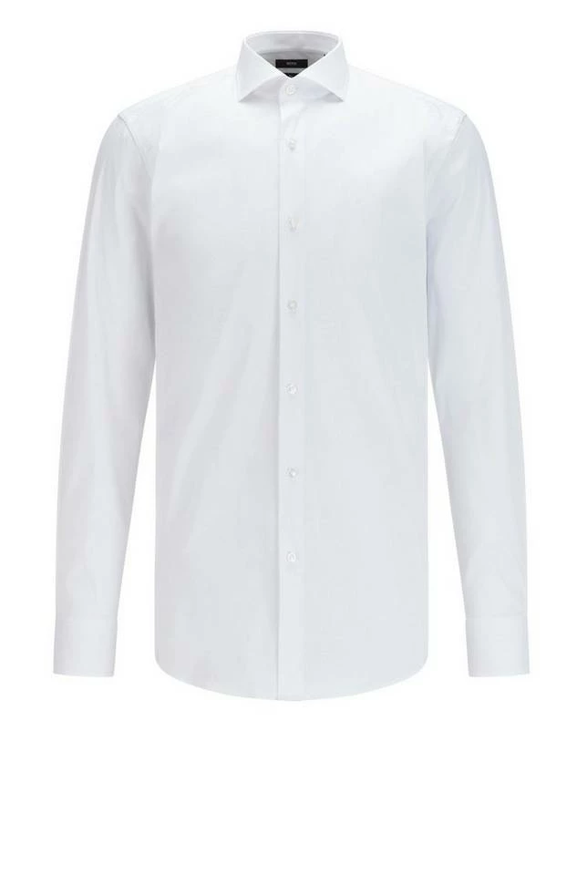 Schmal geschnittenes BOSS Hemd. Das zeitgemäße Herren-Hemd aus elastischer Baumwoll-Popeline ist atmungsaktiv und fühlt sich besonders soft an. Ein innovatives bügelleichtes Finish macht den Style zur idealen Ergänzung für Ihre Business-Garderobe. Slim Fit / Schmale Passform Cutaway-Kragen Abgerundete Manschetten