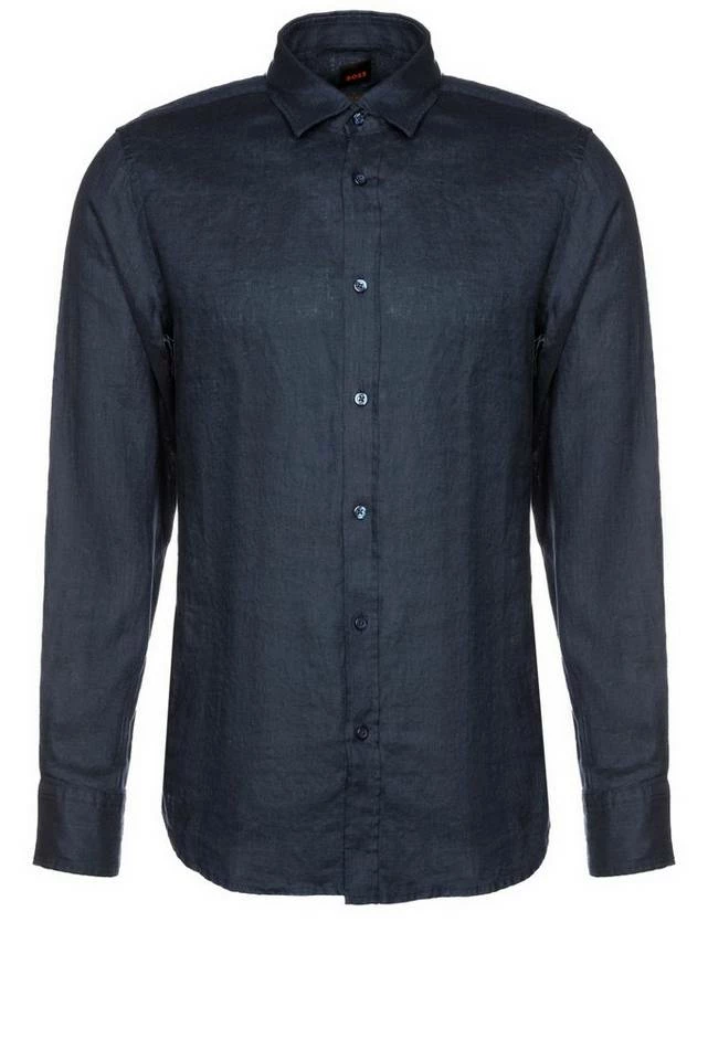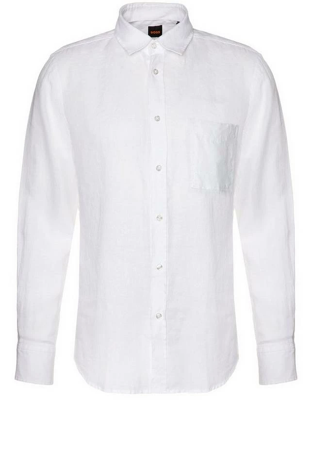 Herren-Hemd von BOSS Menswear Regular Fit / Normale Passform Kentkragen Schließt mit Knopfleiste Lange Ärmel mit abgerundeten Manschetten Aus reiner Leinen-Qualität