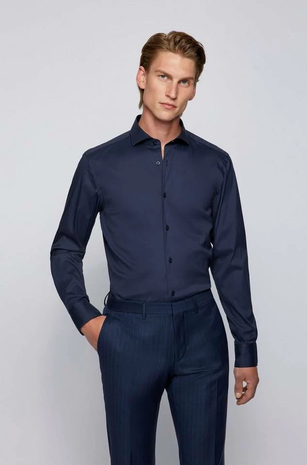 Herren-Hemd von BOSS Menswear , Hemd aus Performance Stretch Slim Fit / Schmale Passform , Funktionsmaterial, mit maximaler Bewegungsfreiheit atmungsaktiv Kentkragen , Schließt mit Knopfleiste Lange Ärmel mit Knopf-Details