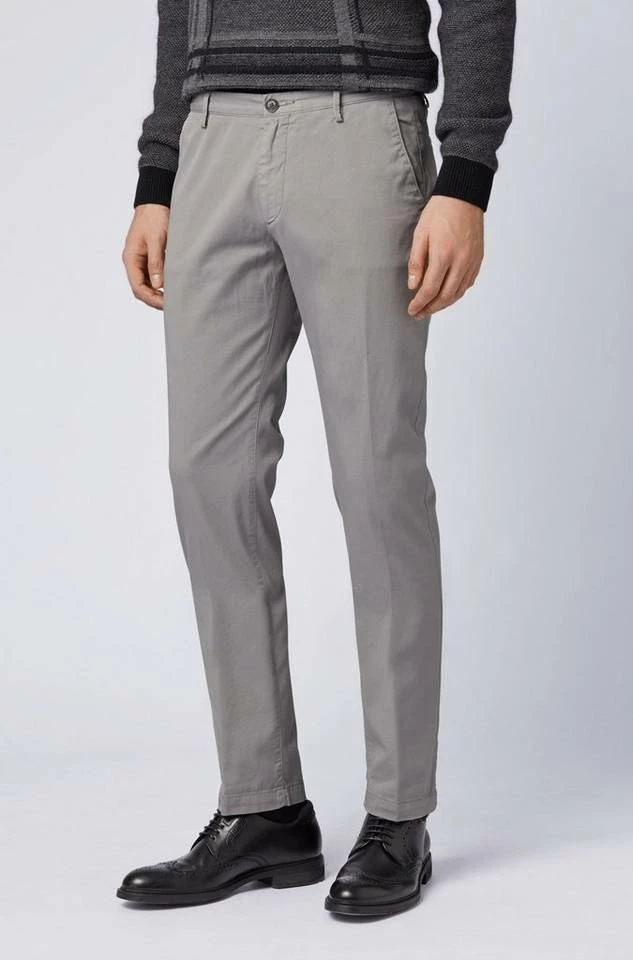 BOSS Chino aus Stretch-Baumwolle mit schmalem Beinverlauf. Die filigrane Twill-Struktur verleiht der gerade geschnittenen Herren-Hose sowohl einen eleganten als auch legeren Touch. An den Oberschenkeln ist der Style für optimale Bewegungsfreiheit etwas weiter geschnitten. Ideale Grundlage für zahlreiche Smart-Casual-Looks.