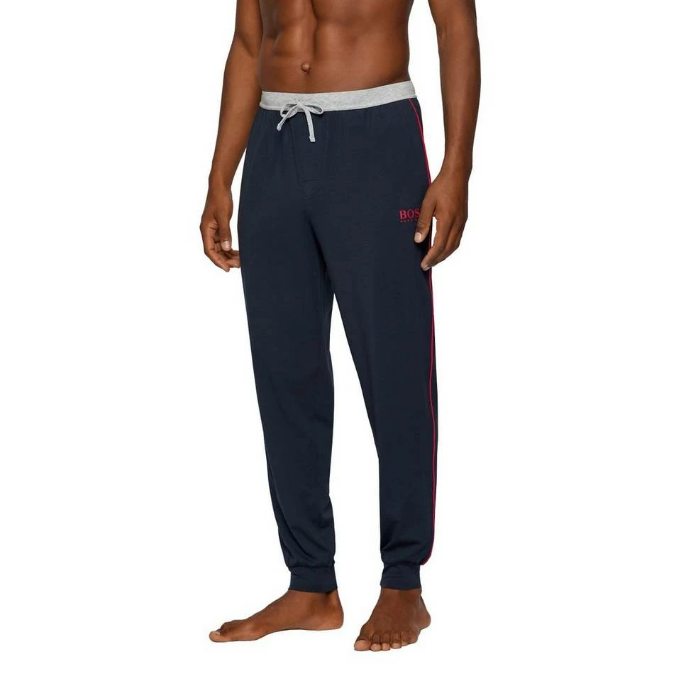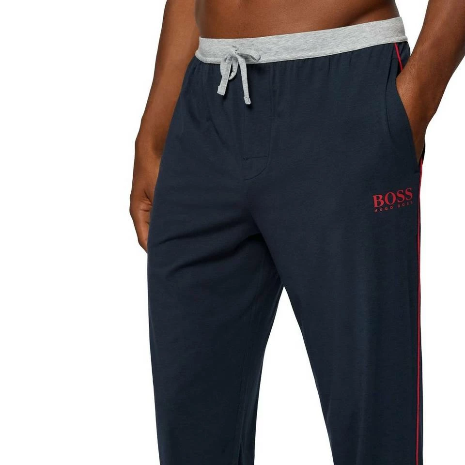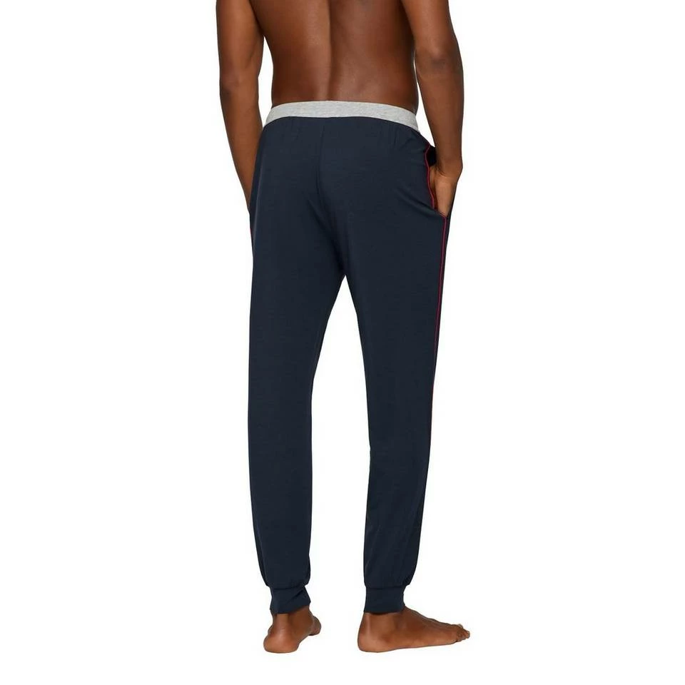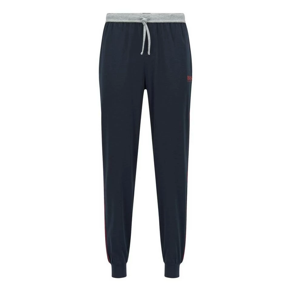 Die bequeme Loungewear Pants ist aus einem weichen, leichten Baumwollmischgewebe gefertigt und überzeugt mit einem ausgezeichneten Tragegefühl. Der Bund ist mit einem praktischen Kordelzug ausgestattet und bietet so ein angenehmes Tragegefühl. Die elastischen Bündchen an den Beinen und die rote Paspel verleihen der Homewear Hose einen sportlichen Touch. Abgerundet wird das Design durch die lässigen Seitentaschen. Ein charakteristisches BOSS Logo verleiht dem komfortablen Style den letzten Schliff. Zuhause auf dem Sofa bist du mit der Jogginghose von HUGO BOSS immer optimal gekleidet!
