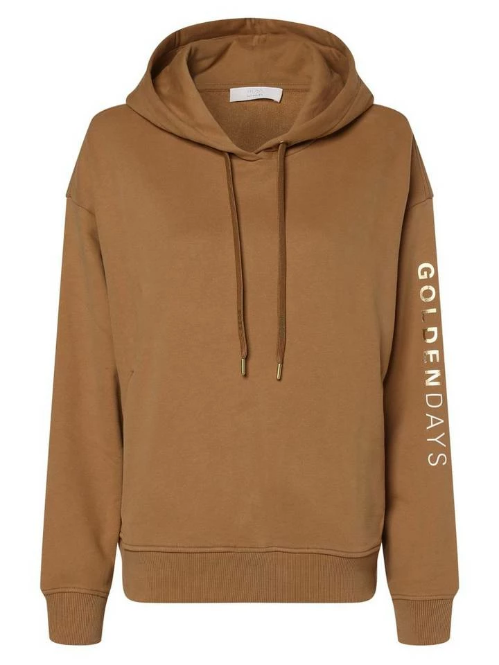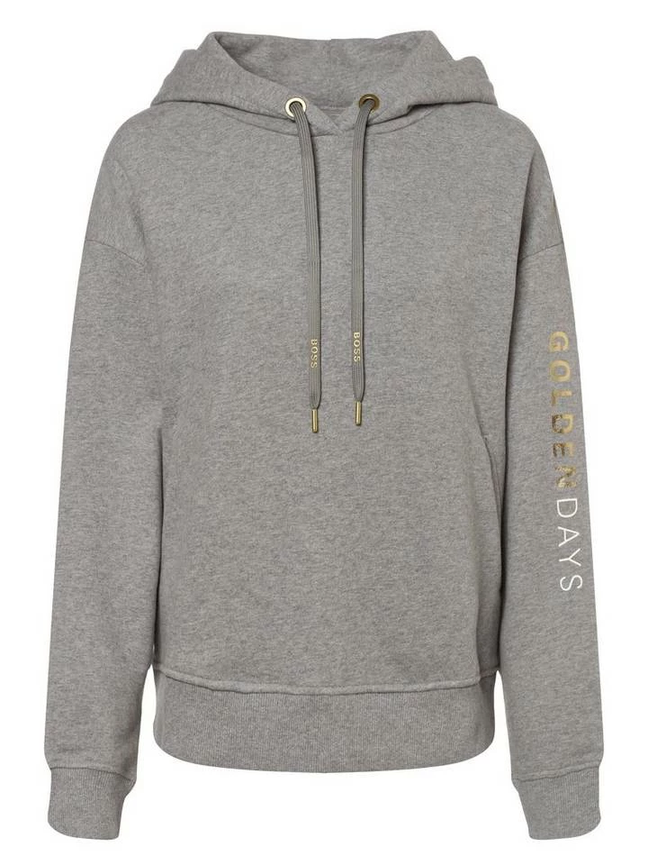 Die BOSS Casual-Logos als Metallic-Folienprint hinten und am Ärmel sorgen bei dem Kapuzenpullover C_Eustice_Gold für einen glanzvollen Streetstyle-Look.