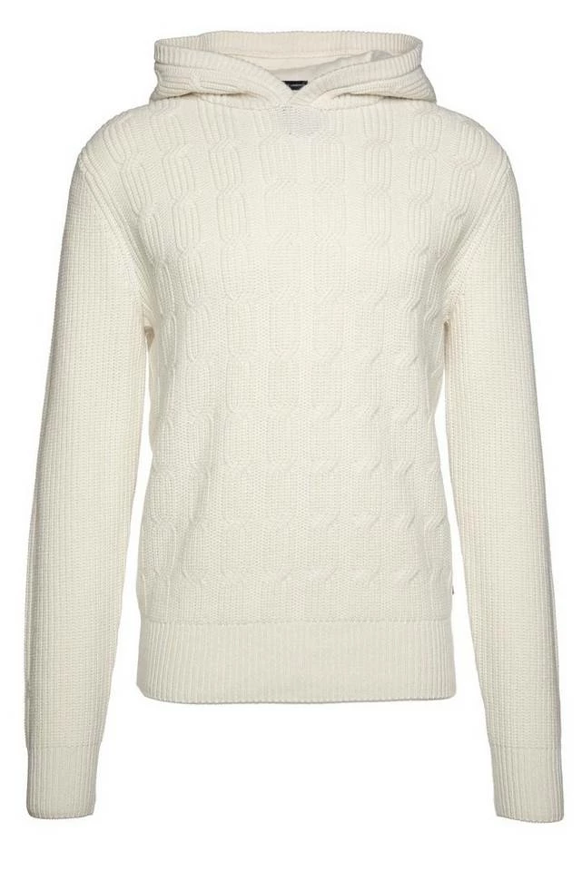 Herren-Pullover von BOSS Menswear , Regular Fit / Normale Passform , Mit Kapuze , Zopf-Strickmuster vorne , Aus weicher Schurwolle