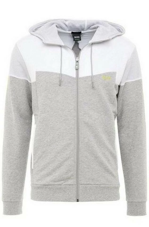 Hugo Boss Herren Sweatjacke Saggy BOSS Jacke aus softem French Terry mit Reißverschluss. Gerippte Elastikbündchen an den Ärmeln und eine verstellbare Kapuze sorgen für optimalen Tragekomfort, kontrastfarbene Bahnen und Mesh-Details verleihen der gerade geschnittenen Herren-Jacke einen modernen Colour-Block-Effekt. In Kombination mit der passenden Jogginghose entsteht ein sportives Freizeit-Ensemble. Finden sie diese Jacke bei uns in Aalen! Details der Saggy Sweatjacke für Herren Regular Fit Jacke mit Kapuze Verschluss oben: Reißverschluss Taschen oben: Leistentaschen Lange Ärmel Rippbündchen Standardlänge