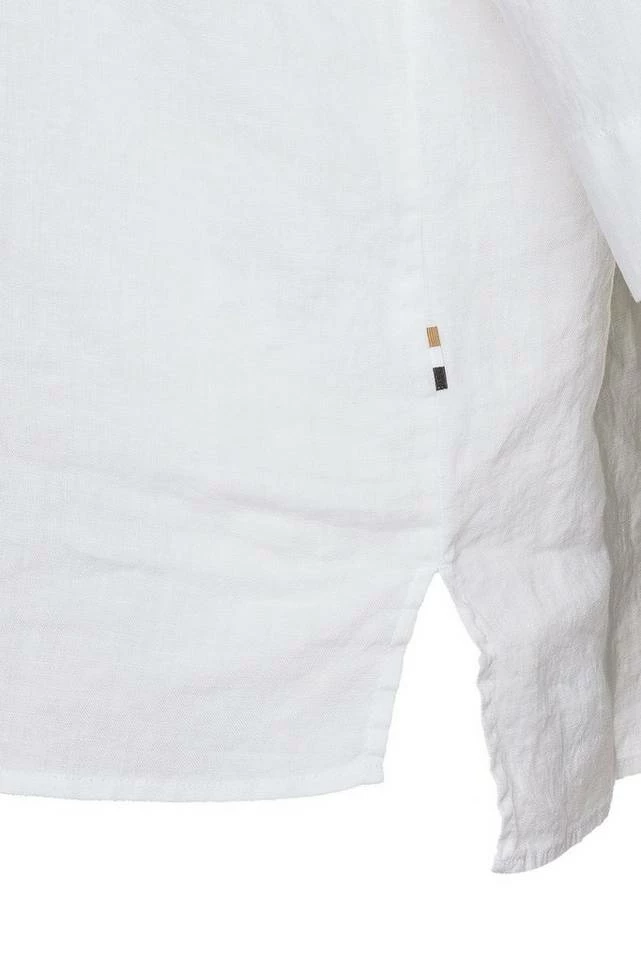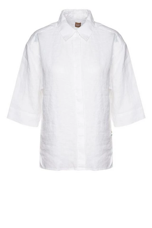 Sommerliche BOSS Bluse aus leichtem, atmungsaktivem Leinen. Das gerade geschnittene, legere Damen-Hemd mit verdeckter Knopfleiste und sichtbarem oberstem Knopf ist mit kurzen Ärmeln versehen. Dank Stückfärbung fühlt sich der feminine Style besonders soft an. Regular Fit / Normale Passform Spitzkragen Kurze Ärmel