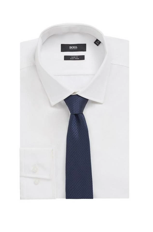 Eine raffinierte Krawatte, die von BOSS fachmännisch gefertigt wurde. Diese in Italien aus reiner Seide hergestellte Krawatte ist aus Jacquard mit einem Mikromuster gewebt, um einem formellen Look Tiefe zu verleihen. Ein wasserabweisendes Finish macht dieses Accessoire ideal für eine Geschäftsreisekapsel.
