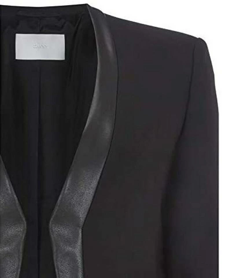 HUGO BOSS Jacke schicker Damen Kurz-Blazer mit Kontrastdetail in Leder-Optik Schwarz