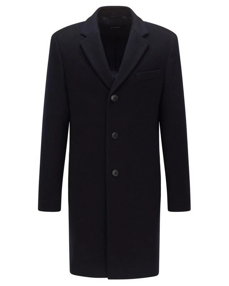 Ob auf dem Weg zum Business oder zu einem besonderen Anlass, der Mantel H-Hyde-214 von BOSS veredelt mit hochwertiger Schurwolle-Kaschmir-Mischung jeden Tag und sorgt mit schmaler, cleaner Silhouette für einen distinguierten Look.