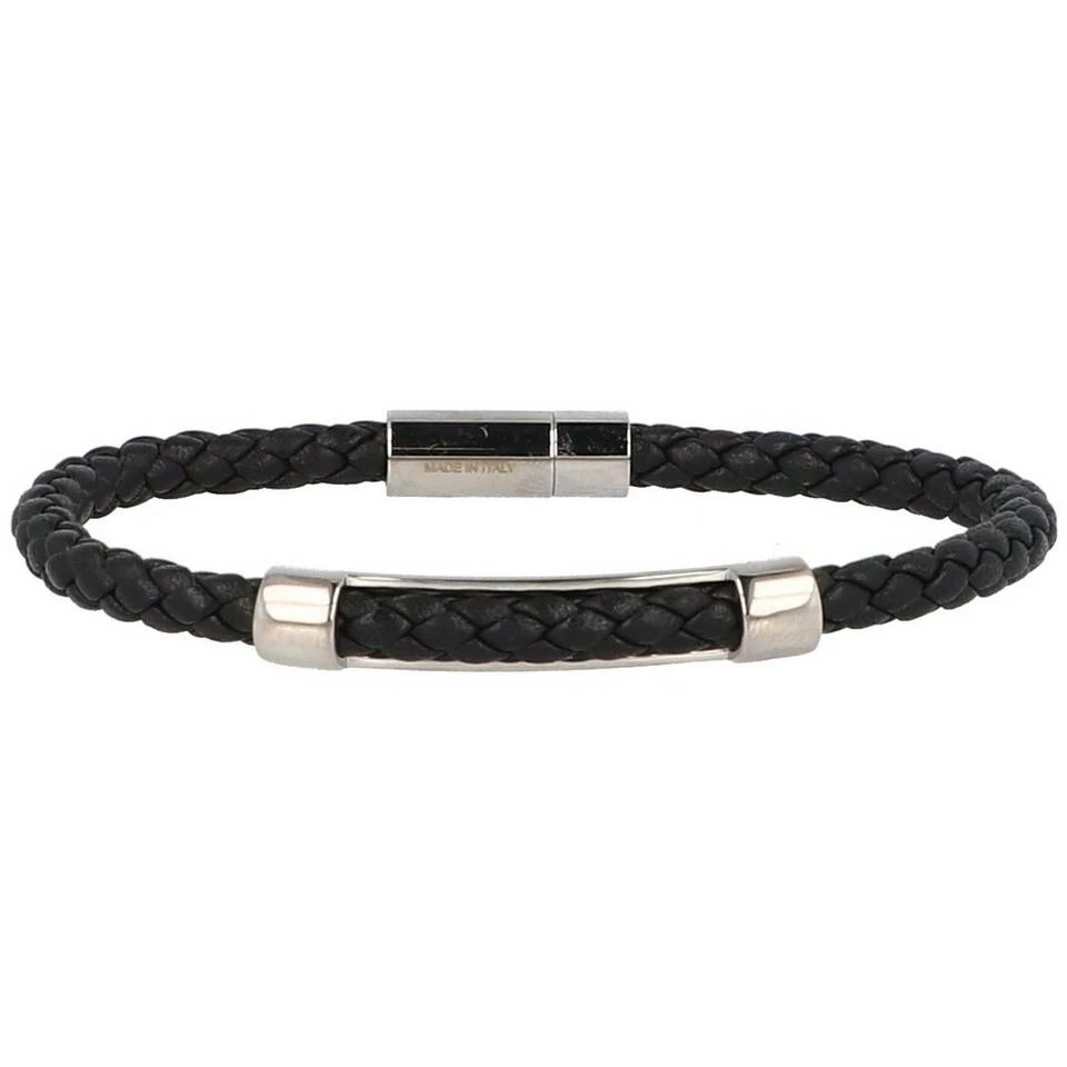 Schönes geflochtenes Armband aus Italienischem Leder. Die Metall-Plakette gibt dem Ganzen den letzten Schliff. Das perfekte Accessoire für den modernen Mann.