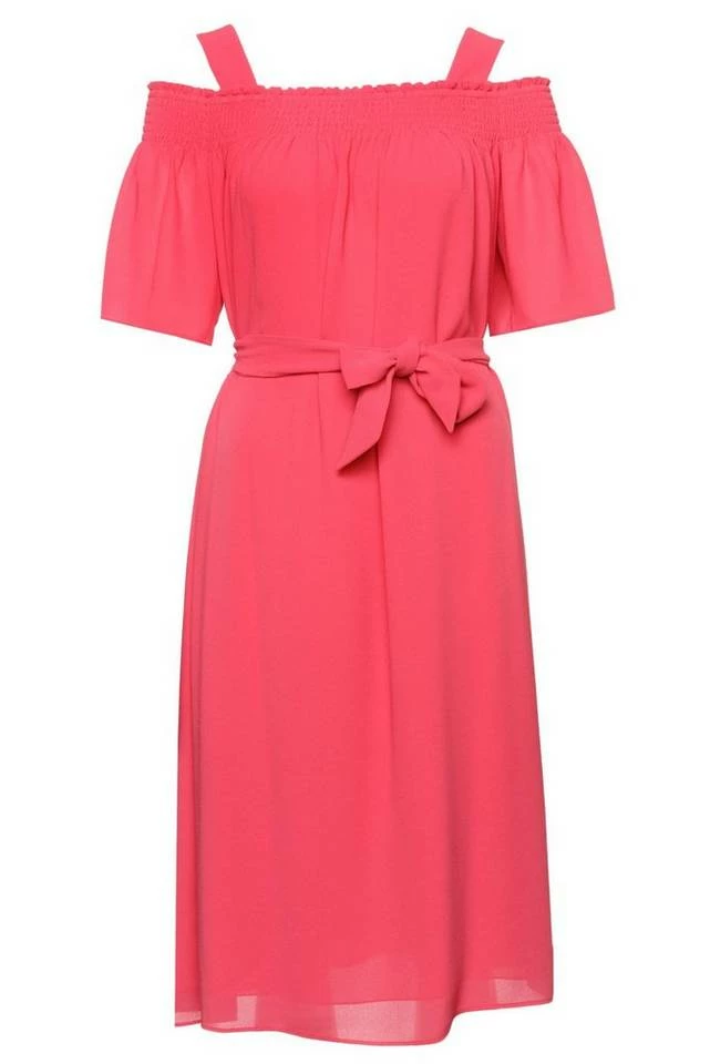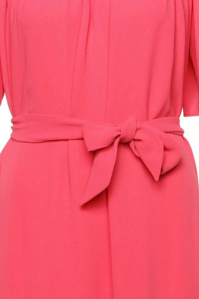 Tailliertes Kleid von BOSS Gesmokter Schulter-Ausschnitt Kurze Ärmel Bindegürtel mit Schleife an der Taille Innenfutter