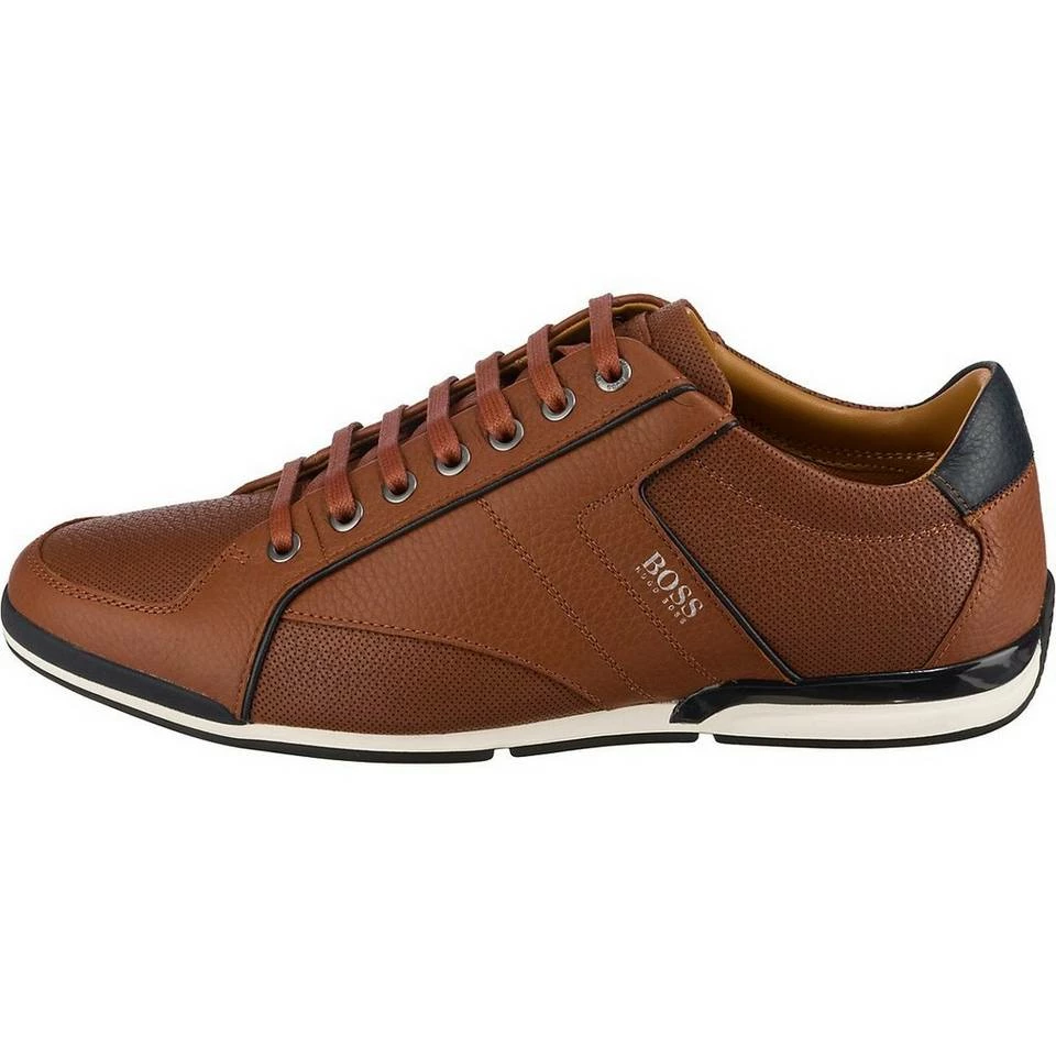 – Obermaterial aus echtem, genarbtem Rindsleder – Zunge und Einstiegskante gepolstert – gepolsterte, herausnehmbare Decksohle Die BOSS Model Saturn Sneakers Low sind im Zehen- und Fersenbereich verstärkt. Die hinten hochgezogene, flexible Profil-Laufsohle ist rutschhemmend. Verschluss: Schnürverschluss Absatzart: Flach Absatzhöhe ca.: 1 cm Schuhweite: E Obermaterial: Leder (Rindsleder) Futter: Sonstiges Material (Materialmix aus Synthetik und Textil) Decksohle: Textil (Herausnehmbare Textilsohle) Laufsohle: Sonstiges Material (Gummi- /Synthetiksohle)