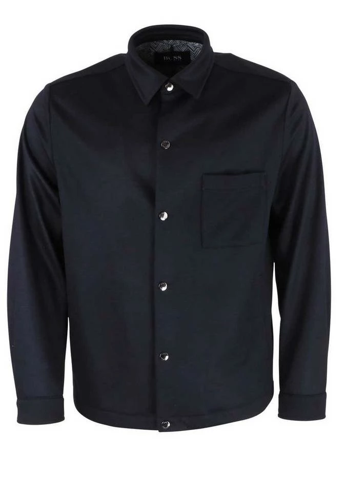 - BOSS Herren Hemdjacke C-Carper-J-COACH-221 Hemdkragen geknöpft Brusttasche Schurwolle Baumwolle seitliche Eingrifftaschen Zierähte Uni nachtblau
