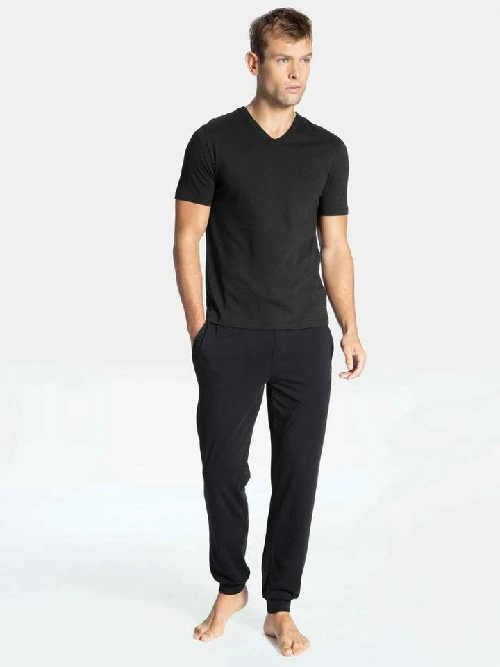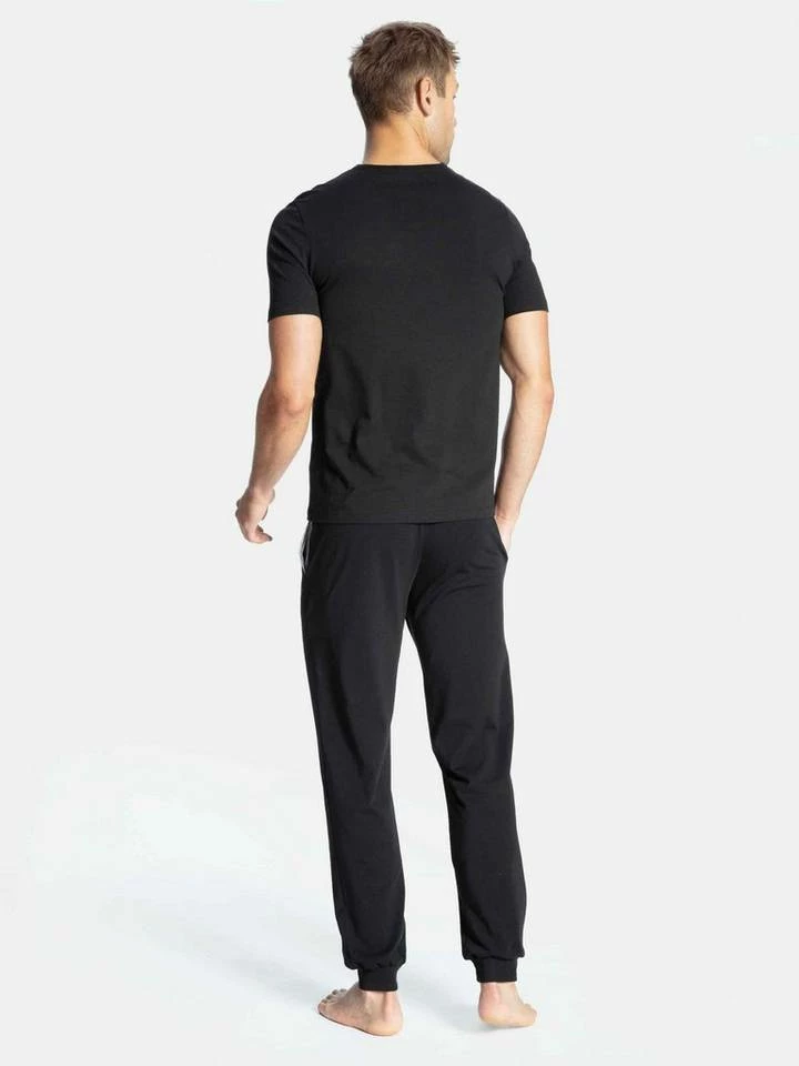 Lounge-Set elastisches Baumwollgewebe Kurzarm-Shirt mit Rundhalsausschnitt Hosenbund mit Tunnelzug Bündchen am Beinabschluss Logo auf dem Shirt und der Hose