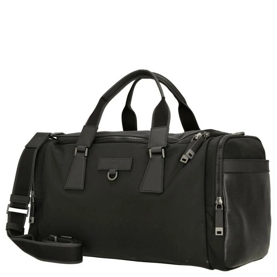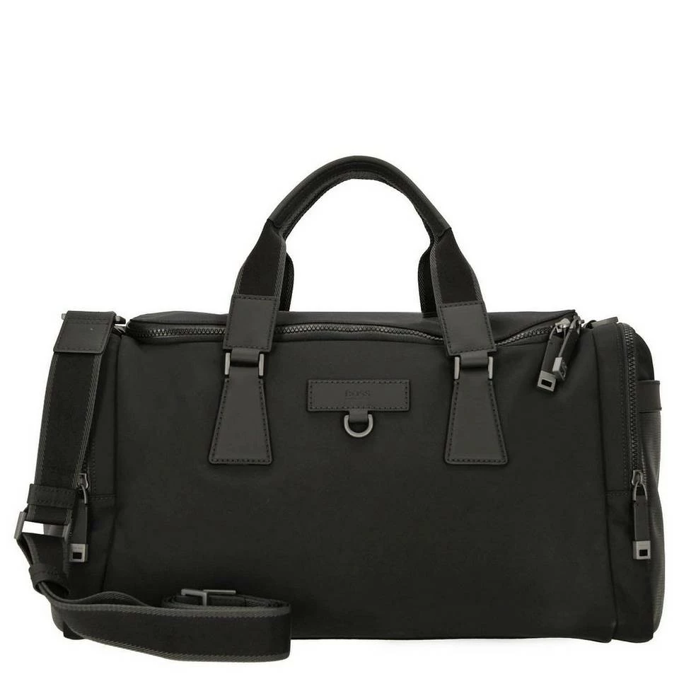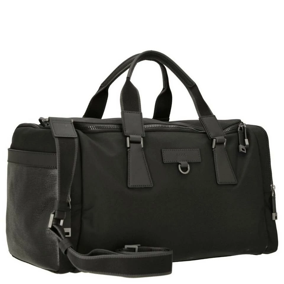 Geräumiger BOSS Weekender aus recycelten Fasern im zeitgemäßen Design. Das Herren-Accessoire mit Besätzen aus geprägtem und glattem Leder ist mit einem verstellbaren Riemen und einem geräumigen Hauptfach ausgestattet.