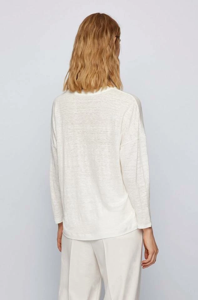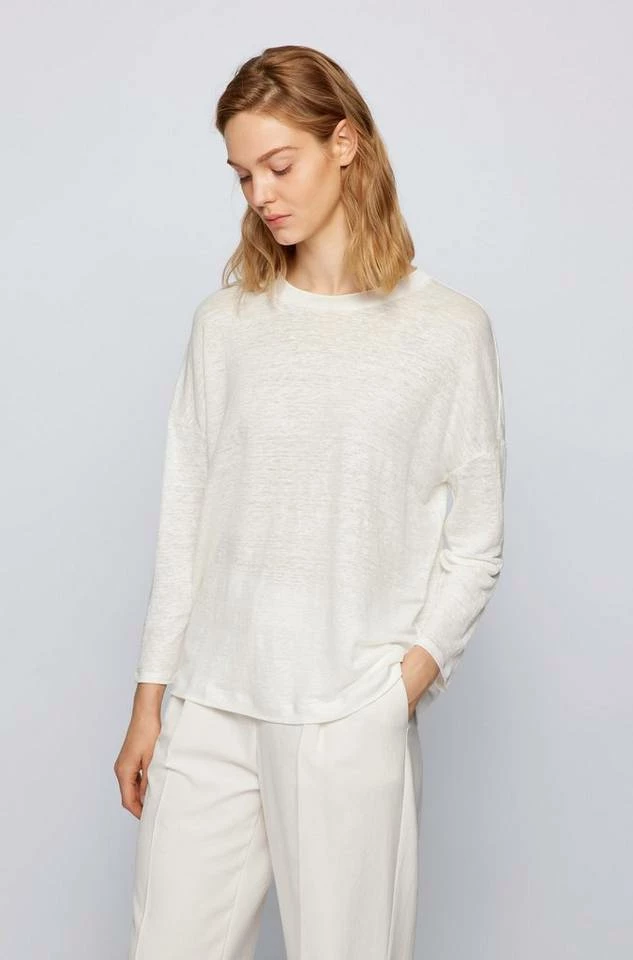 Vielseitig kombinierbares BOSS Top. Das locker geschnittene Damen-Shirt aus reinem Hanf mit Rundhalsausschnitt verspricht langanhaltende Strapazierfähigkeit und natürlichen Tragekomfort. Überschnittene Schultern und verkürzte Ärmel runden den Style ab. Bei der Herstellung und Fertigung unserer Produkte sind wir immer auf der Suche nach nachhaltigeren Lösungen. Relaxed Fit / Lockere Passform Rundhalsausschnitt 3/4-Ärmel