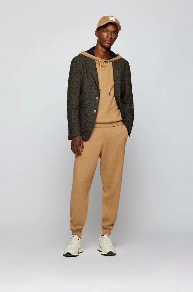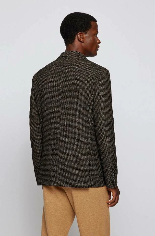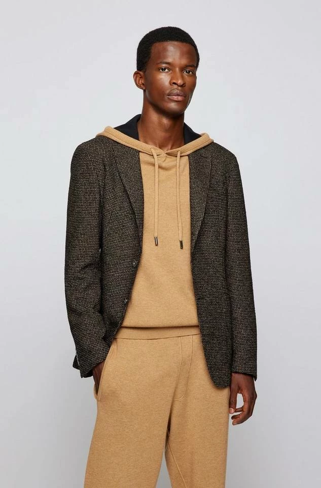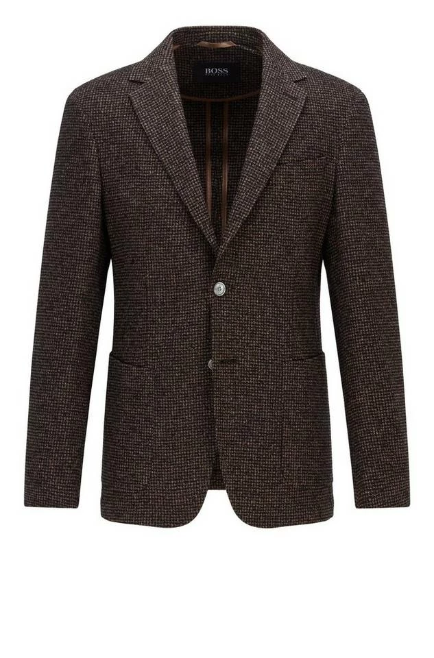 Charakteristisches BOSS Sakko mit schmaler Passform. Das Herren-Jackett ist aus einem Woll-Mix mit Baumwoll-Anteil gefertigt und mit einem zeitgemäßen Muster versehen. Ein fallendes Revers, ein partielles Innenfutter und Perlmuttknöpfe runden den Style ab. Slim Fit / Schmale Passform Fallendes Revers Schließt mit zwei Knöpfen Brusttasche mit Leiste Aufgesetzte Eingrifftaschen Manschetten mit Kissing-Buttons Partielles Innenfutter