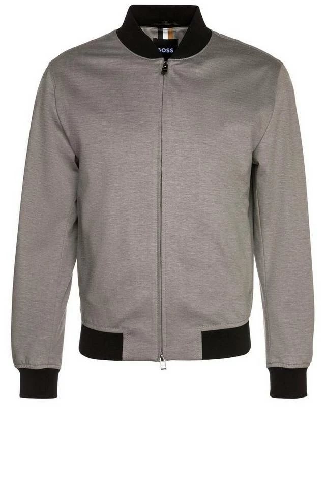 BOSS Sakko mit Reißverschluss. Kontrastfarbene Details verleihen dem schmal geschnittenen Herren-Jackett einen zeitgemäßen Touch. Der Style ist aus einem Baumwoll-Mix mit melierter Struktur gefertigt. Ein charakteristischer Streifen innen rundet das Design ab. Slim Fit / Schmale Passform Stehkragen Schließt mit Reißverschluss Seitliche Leistentaschen Mit Rippbündchen Partielles Innenfutter