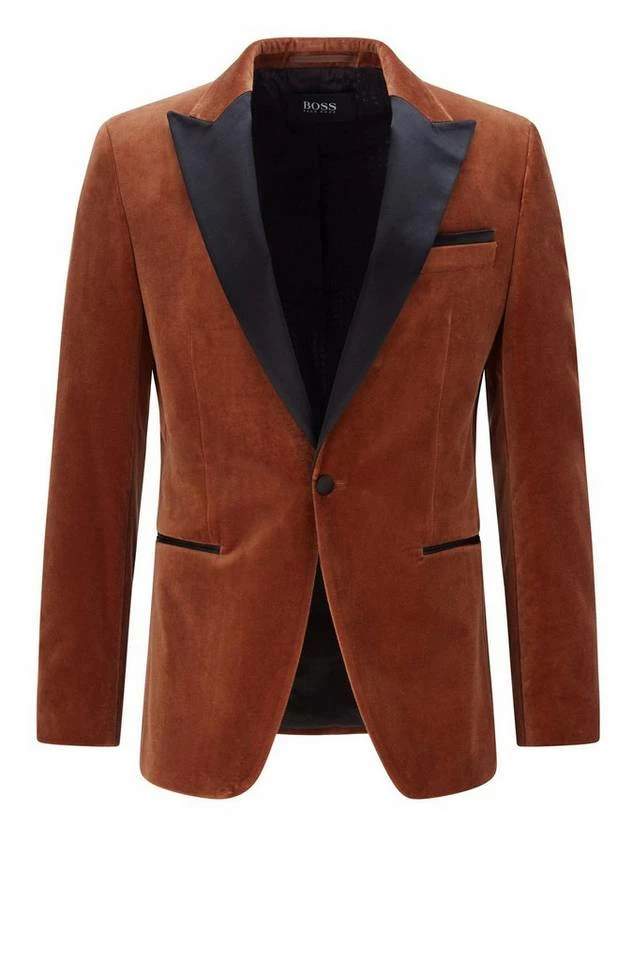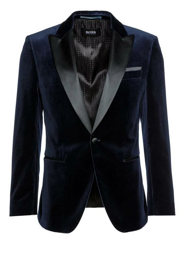 Herren-Sakko von BOSS Menswear , Slim Fit / Schmale Passform Steigendes Revers , Schließt mit einem Knopf Seitliche Pattentaschen Lange Ärmel mit Knopf-Manschetten Seitenschlitz Mit Innenfutter In Samt-Optik