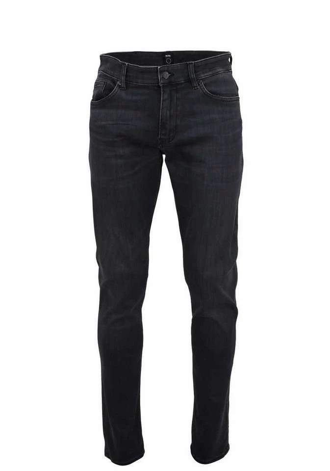 - BOSS Businesswear Herren Jeans Slim Fit Used 5 Pocket Ziernähte Button-Zipp-Verschluss Stretch Uni dunkelgrau