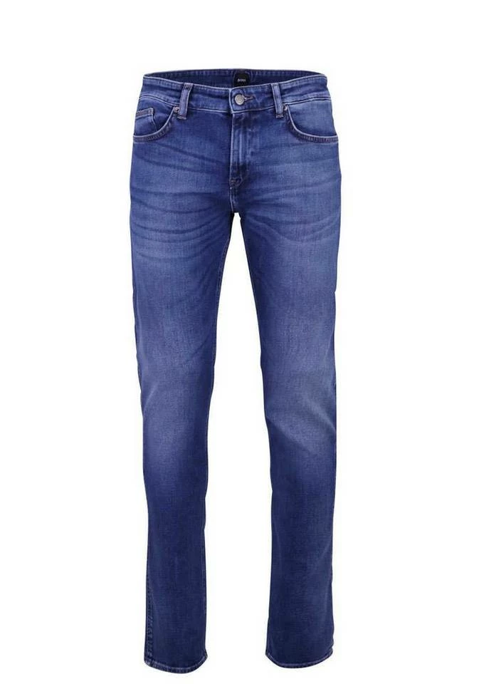 BOSS Slim Fit Jeans DELAWARE3 in angenehmer Baumwoll-Stretch-Qualität gefertigt. Feine Ziernähte, Button-Zipp-Verschluss, 5 Pocket und Used-Waschungen vollenden das Design.