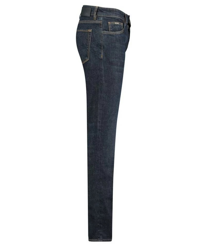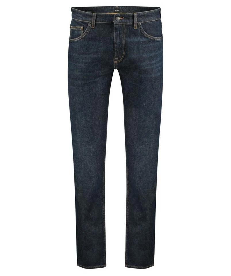 Die modische Jeans Maine3 von BOSS präsentiert sich im komfortablen Regular Fit und ist in dunkler Waschung mit kontrastierenden Nähten der perfekte Kombinationspartner für Casual-Looks.