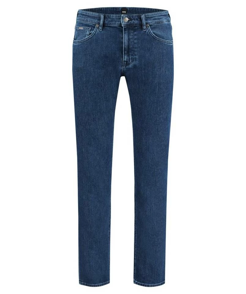 Die modische Jeans Maine3 von BOSS präsentiert sich in komfortablem Regular Fit und ist in cleanem Look mit tonalen Nähten der perfekte Kombinationspartner für Casual-Looks. – Cleane Waschung – Denim mit Stretchanteil – Tonale Nähte – Logopatch aus Leder am Bund