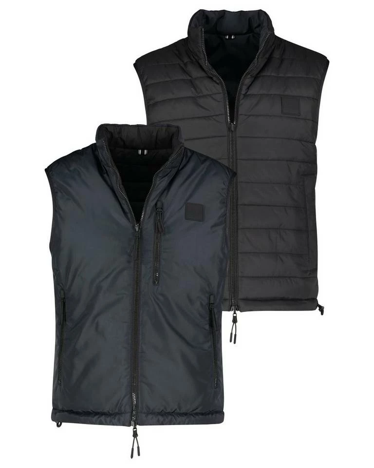 Die moderne Weste Cusare von BOSS besticht durch ein dezent-schickes Design mit kontrastreichen Elementen. Besonders praktisch ist hierbei, dass die Wendejacke zwei unterschiedliche Farbmodelle und verschiedenartige Taschenformen mit sich bringt.
