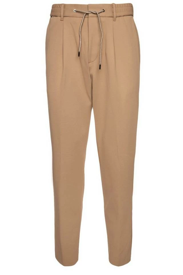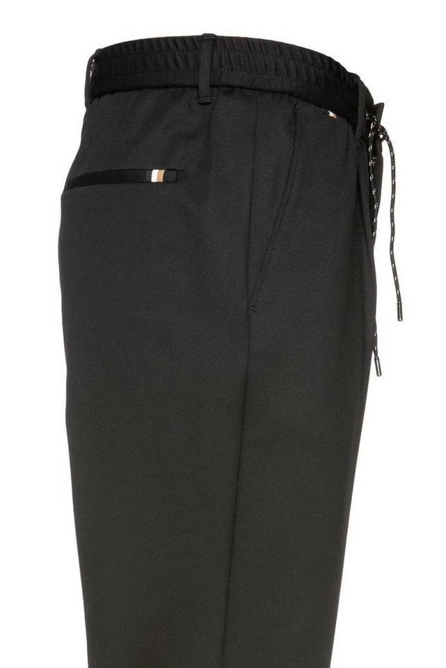 Zeitgemäße BOSS Hose mit lockerer Passform. Die Herren-Hose in Cropped-Länge ist mit gestreiften Details an Bund und Gesäßtasche versehen. Bundfalten auf der Vorderseite sorgen für ein zeitgemäßes Volumen. Der Bund ist teilweise elastisch und kann mit einem Tunnelzug verstellt werden. Relaxed Fit / Lockere Passform Bund mit Tunnelzug Bundfalten vorne Seitliche Eingrifftaschen Leistentaschen am Gesäß