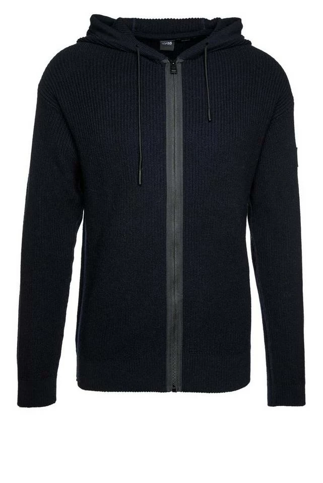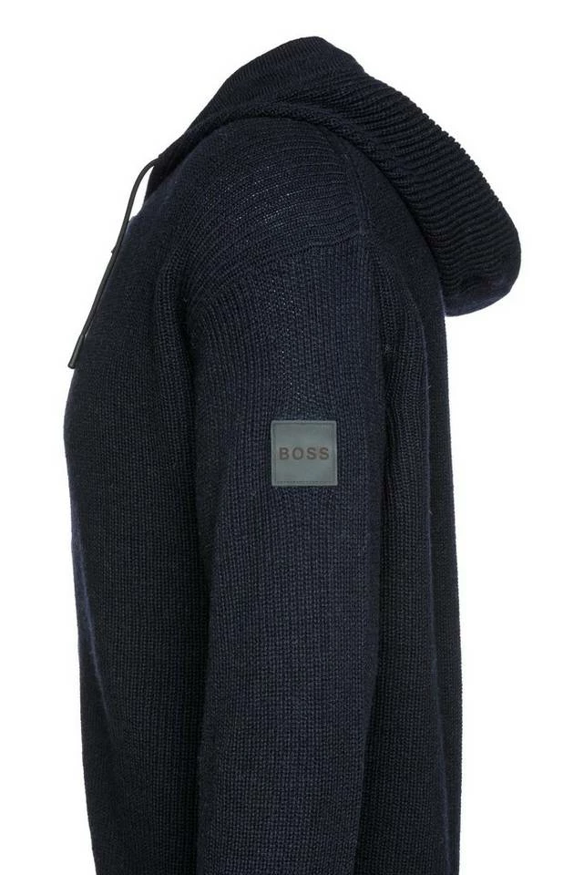 Herren-Strickjacke von BOSS Menswear , Regular Fit / Normale Passform , Kapuze mit Tunnelzug , Schließt mit Reißverschluss , Überschnittene Schultern , Im Rippstrick-Muster