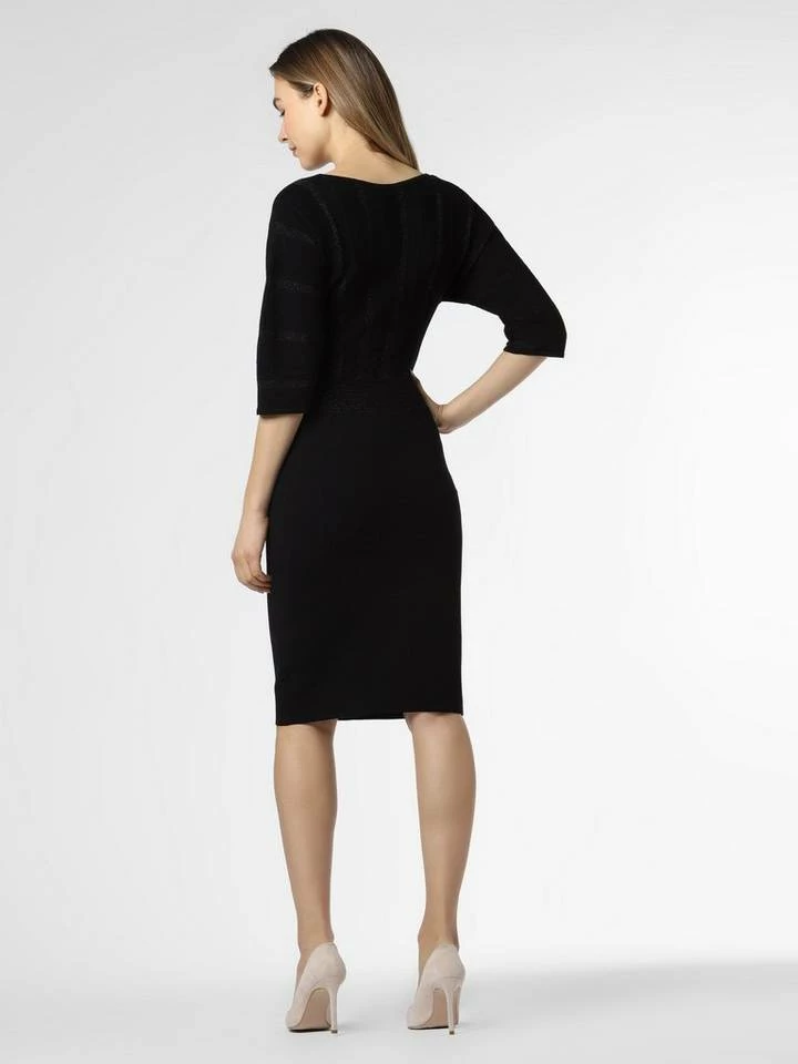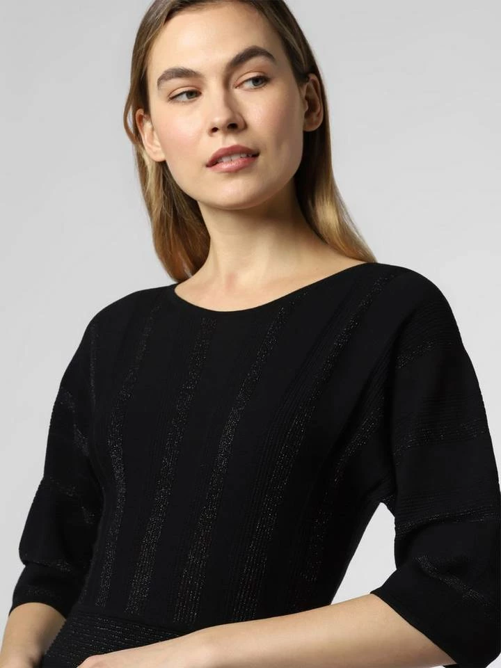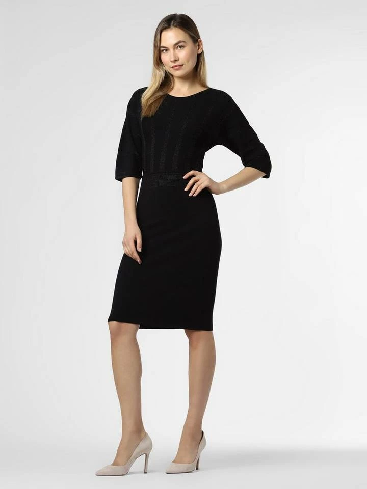 Das Kleid C_Fayuria von BOSS Casual aus feinem Strick zeigt sich mit einem stilvoll strukturierten, teils glitzernden Oberteil, während der Rock schlicht gehalten ist.