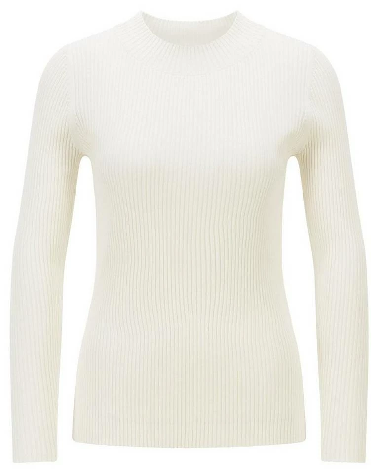 Der schmal geschnittene Pullover Fumna von BOSS passt ausgezeichnet zu puristischen, eleganten Looks mit dem gewissen Etwas. Die schmale Rippenstrickstruktur unterstreicht die cleane Silhouette, während ein Cut-Out am Rücken dem Oberteil modische Raffinesse verleiht.