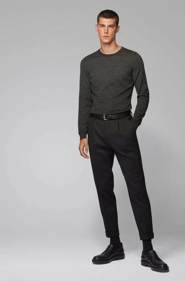 Zeitgemäßer BOSS Pullover aus nachhaltig gewonnener Schurwolle. Der schmal geschnittene Herren-Pullover mit Rundhalsausschnitt präsentiert sich mit dezenten Struktur-Details an den Seitennähten. Passt perfekt zu Jeans, Hemden und Ihren Lieblingsjacken.