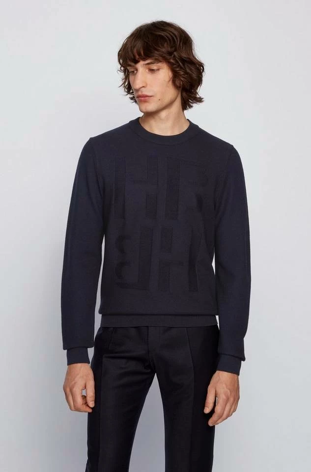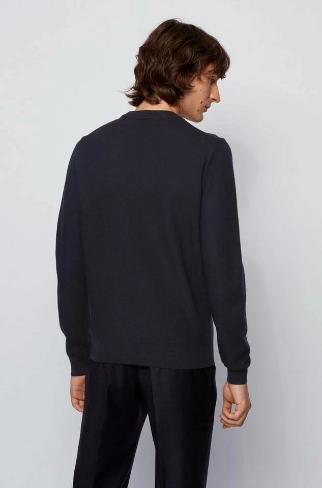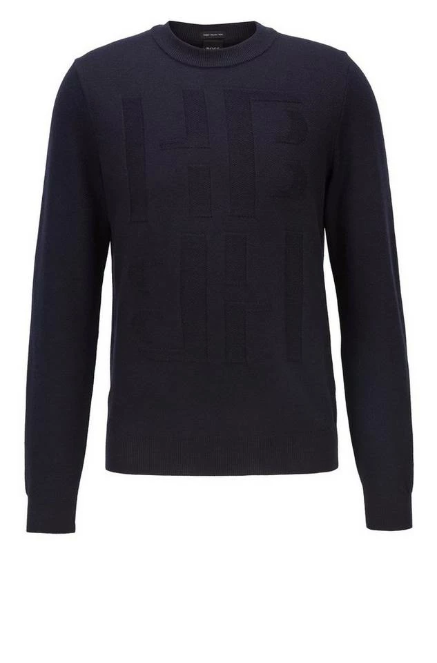 Fein strukturierter Pullover aus Schurwolle mit tonalem Monogramm. Vielseitig kombinierbarer BOSS Strickpullover aus reiner Schurwolle mit durchgehender, filigraner Struktur. Der gerade geschnittene Herren-Pullover ist auf der Vorderseite mit einem tonalen Monogramm-Motiv versehen. Dank seiner atmungsaktiven Beschaffenheit ist der Style die ideale Wahl für jede Jahreszeit und jedes Wetter. Regular Fit Ausschnitt: Rundhalsausschnitt Lange Ärmel Standardlänge