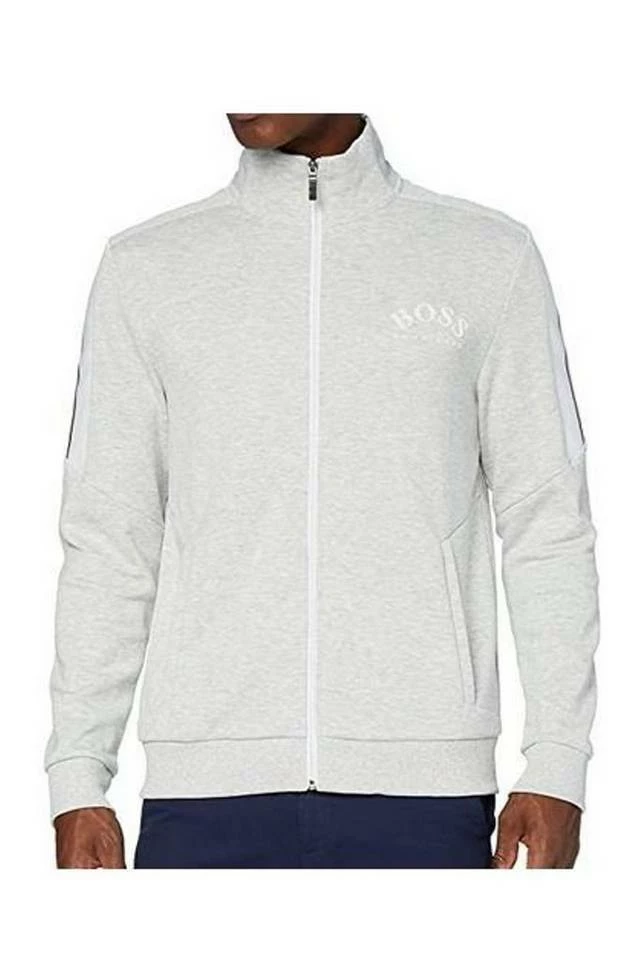 Hugo Boss Herren Sweatjacke Skaz Komfortable BOSS Green Jacke aus einem zweiseitigen Baumwoll-Mix. Die klarlinige Herren-Jacke mit Reißverschluss ist gerade geschnitten und mit Ripp-Ärmelbündchen sowie dezenten Farbkontrasten an den Schultern versehen. Abgerundet wird der Style durch das markante BOSS Logo auf der Brust. Typische Casual-Jacke, die zahlreiche Kombinationsmöglichkeiten bietet und in jedem Alltag nützlich ist! Details der Skaz Sweatjacke für Herren Regular Fit Troyer Verschluss oben: Reißverschluss Taschen oben: Leistentaschen Lange Ärmel Rippbündchen Standardlänge [Material:] 94% Baumwolle, 6% Polyamid
