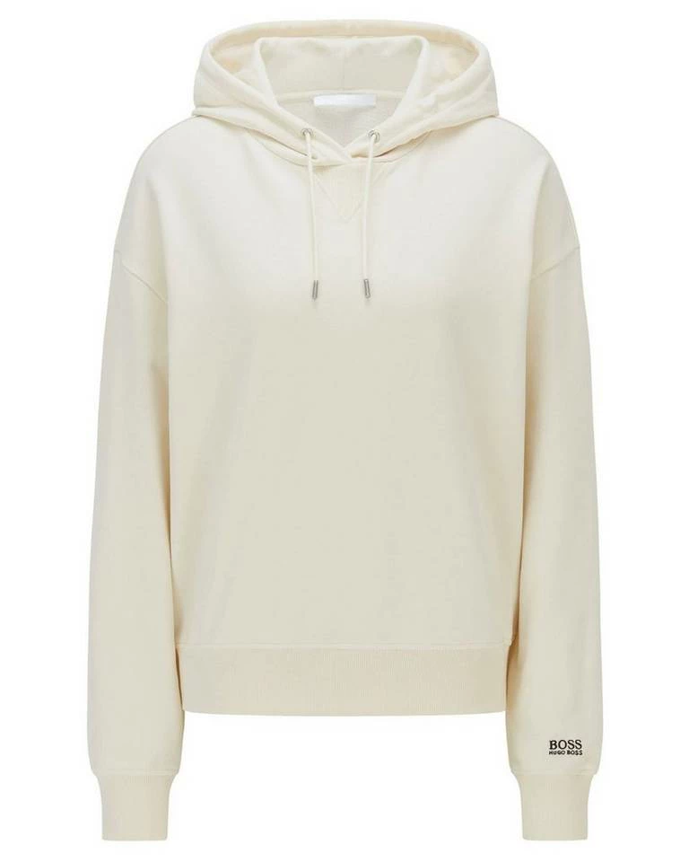 Ideal für den Smart-Casual-Look: das BOSS Kapuzen-Sweatshirt mit lockerer Passform. Der Damen-Hoodie Efessa ist aus einem Baumwoll-Mix mit Terry-Struktur gefertigt, der für ein angenehmes Tragegefühl auf der Innenseite gebürstet ist. Auf der Brust befindet sich eine aufgestickte Logo-Kontur. In Kombination mit einer eleganten Hose entsteht ein progressiver Office-Look.